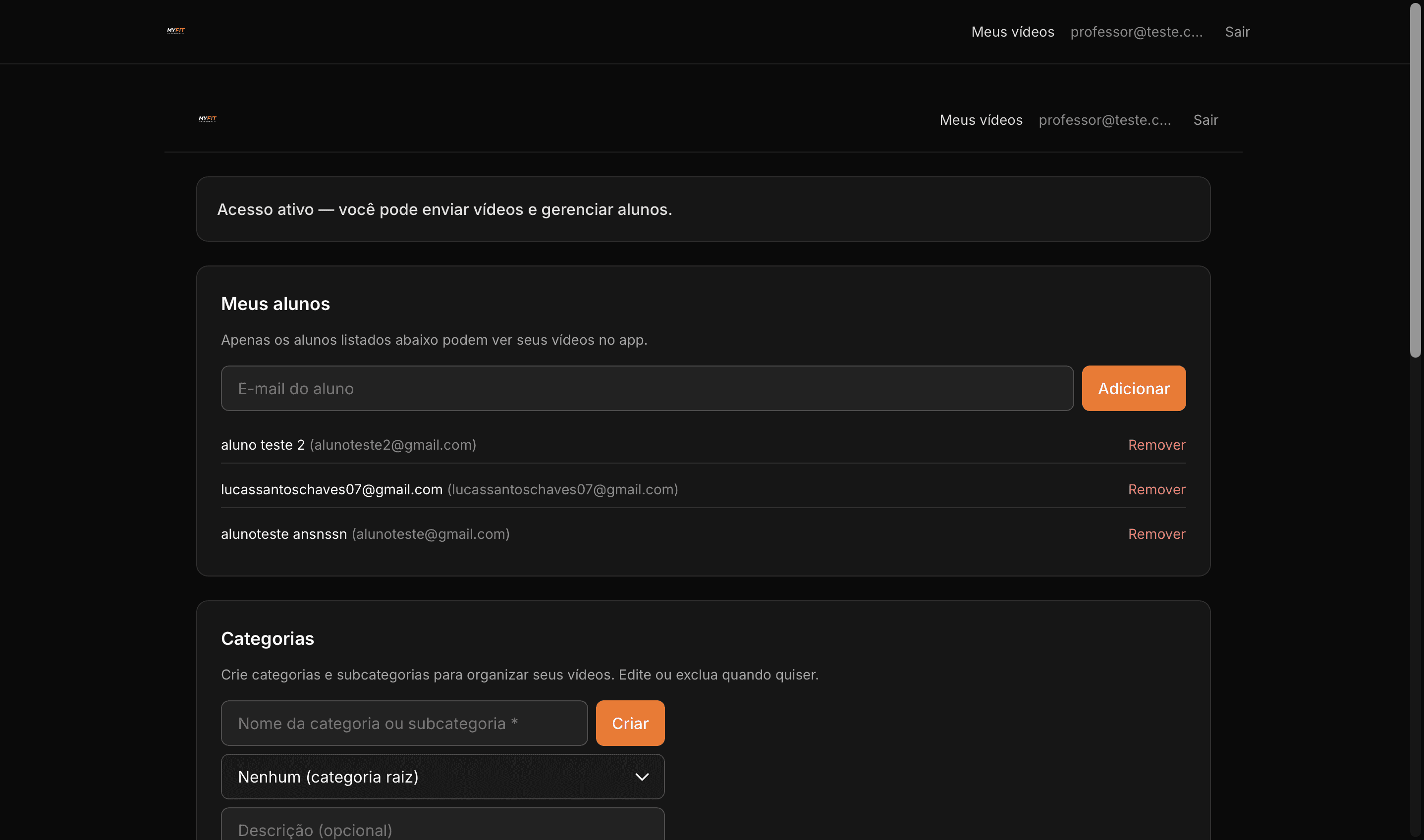 The main goal of MyFit is to give fitness professionals and users a clear, brand-aligned platform that combines modern design with solid functionality: trainers can upload, organize, and manage video content by category, while users get authenticated access to a responsive library with filters and search.
